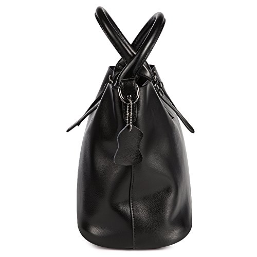 Kattee, borsa a spalla da donna, larga, in pelle, con manici e tracolla, stile alla moda, Black (Nero) - XB092BK-UK