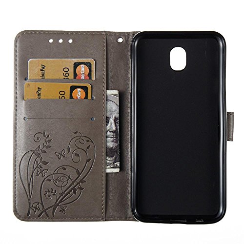 KATUMO Custodia Galaxy J7 2017 Cover, Flip Wallet Case Book style Internamente Silicone TPU Custodie Case in pelle Protettiva Flip Cover per Samsung Galaxy J7 2017 -Grigio