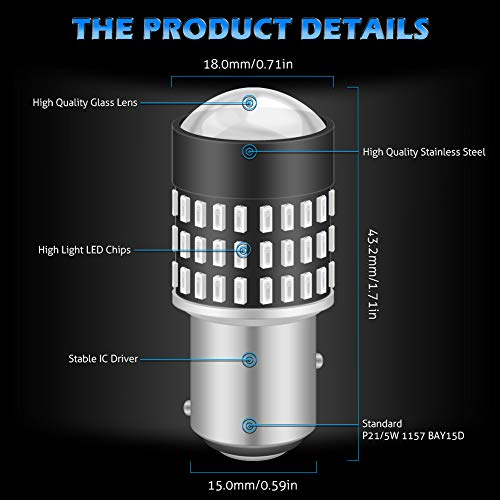 ★ 【Numero di riferimento incrociato】 La base 1157 BAY15D standard può sostituire le lampadine a incandescenza o gli incandescenti come 1016 1034 1157 1157A 1178A 1196 2057 2057A 2357 2357A 2357NA 2397 3496 7528 94.