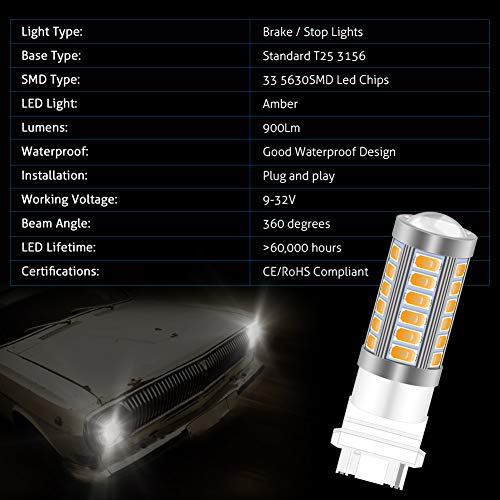 ★ 【3156 Lampadine a LED】 La lampadina a risparmio energetico Super Bright Amber 5630 SMD (33 LED) ha una tensione operativa di 12 V ed è progettata per durare 50.000 ore - 50 volte più a lungo rispetto alle lampade a incandescenza.