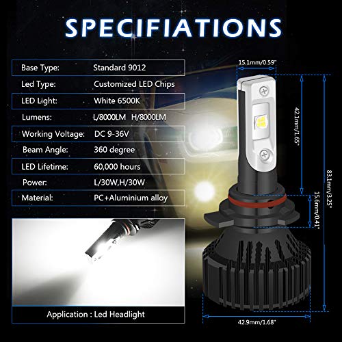 ★【Lampadina del faro a LED 9012 HIR2】 Adatta come faro Fascio abbagliante o anabbagliante a fascio abbagliante, chip CREE di alta qualità. (Doppia faccia) senza punti oscuri o luce nebbiosa.6500K Xenon White, Potenza in ingresso: 60 W / set, Flusso luminoso: 16000LM / Set, Tensione operativa: CC 9-32 V (adatto per veicoli 12V 24V)