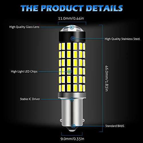 ★ 【Numero di riferimento incrociato】 La base BA9S standard può sostituire le lampadine o gli incandescenti come 12146, 1445, 17053, 1815, 1816, 182, 1889, 1891, 1892, 1893, 1895A, 216, 293, 363, 3886X, 3893, 53, 53X, 57, 6253, 64111, 64113, 64115, 756.