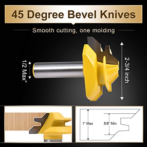 KATUR Fresa a 45 gradi per fresa a tazza, punta per router di serie con attacco da 1/2 pollice per utensile da taglio per legno spesso e punte per finestre (larghezza 1/2"attacco 2-3/4")