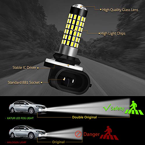 KATUR 894 881 886 889 896 898 Lampadina a LED 900 Lumen 3014 Lampadine a LED 78SMD per fendinebbia DRL, Xenon Bianco (Confezione da 2)