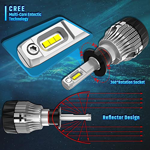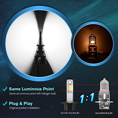 KATUR H3 Lampadine per fari a LED Estremamente Luminose 10000LM CREE Chips Kit di conversione del Faro all-in-One Design Mini 60W 6500K Xenon White-2 Years Waranty