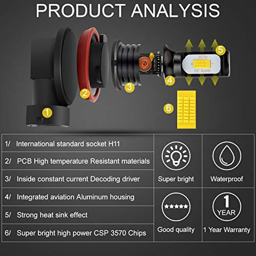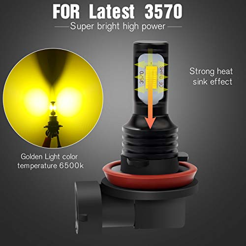 KATUR H11 LED Lampadine fendinebbia Estremamente Luminoso 2400 Lumen Max 75W H8 H9 LED ad Alta Potenza per Luce Diurna DRL o fendinebbia, Luce Dorata (H11/H8/H9 Luce Dorata)