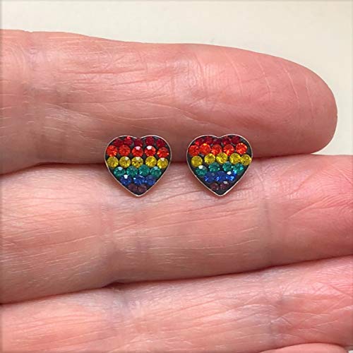 Katy Craig Orecchini in argento Sterling con cristalli scintillanti multicolori, a forma di cuore
