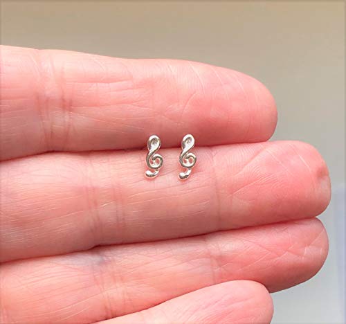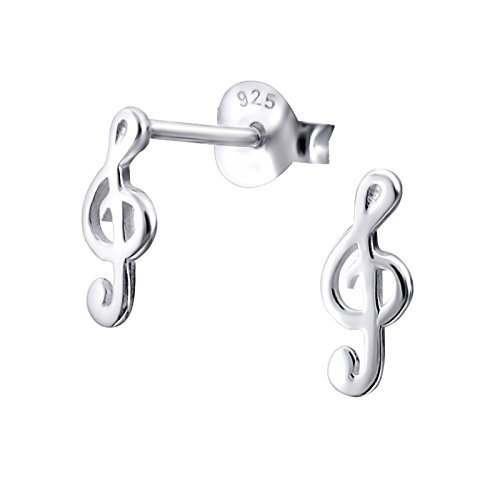 Katy Craig - Orecchini a bottone piccoli in argento Sterling a forma di chiave di violino