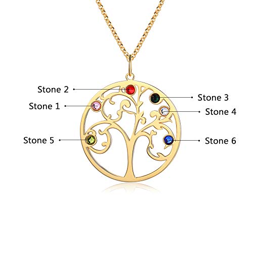 Kaululu Collana Donna Personalizzabile Albero della Vita mit 1-12 Famiglia BFF Pietre de Simulate Collane Famiglia per Mamma Ciondolo in Argento Gioielli Personalizzati (6 Stones)