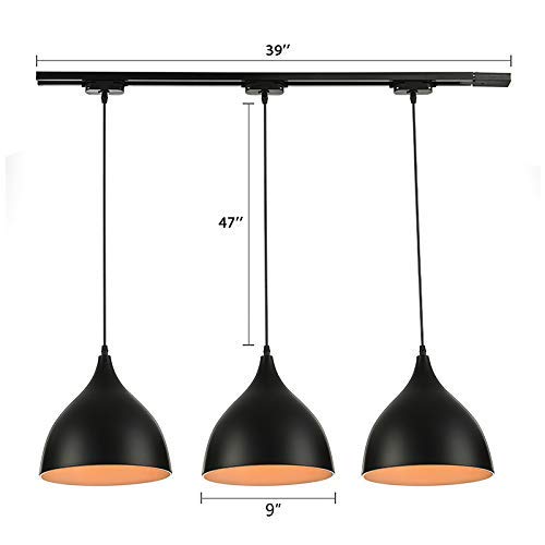 KAUTO Lampada a Sospensione lineare a 3 luci in Metallo Moderno in Ferro Lampada a Sospensione lucidata a Olio con Finitura Nera in Lampada da soffitto a Cupola Illuminazione Decorativa per Interni