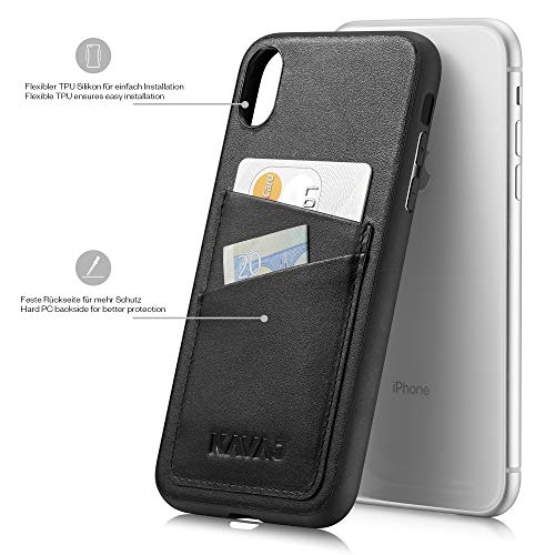 KAVAJ Custodia iPhone XR 6.1" in Pelle Tokyo Vera Pelle Nero Cover in Pelle con Porta Carte Originale Apple i-Phone XR 6,1" Custodia Protezione Slim Custodia Portafoglio XR 6.1"