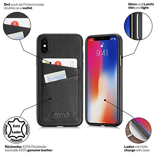 KAVAJ Custodia iPhone X in Pelle Tokyo Vera Pelle Nero Cover in Pelle con Porta Carte Originale Apple i-Phone Custodia Libro per iPhone X Protezione Slim Custodia Portafoglio iphoneX