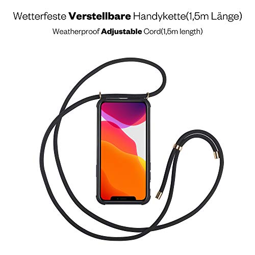 KAVAJ Custodia con Laccio Compatibile con Apple iPhone 11 PRO Max 6.5" Pelle - Amsterdam - Cover con Corda Case Bumper con Tracolla per Il Collo - Cord Nero/Anello d'oro