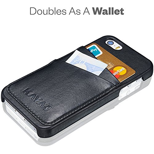 KAVAJ Custodia in pelle "Tokyo" per iPhone SE, iPhone 5S e iPhone 5, in vera pelle, con tasca per biglietti da visita. Sottile cover, elegante accessorio per Apple iPhone SE/5S/5 originale nero