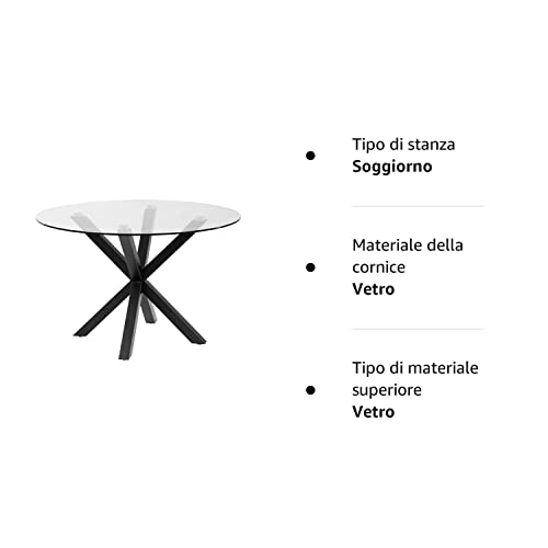 Kave Home - Tavolo rotondo in vetro pieno Argo e gambe in acciaio con finitura nera, diametro 119 cm