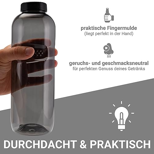 Kavodrink Tritan - 5 bottiglie d'acqua da 1,0 l, colore nero, senza BPA, 1000 ml