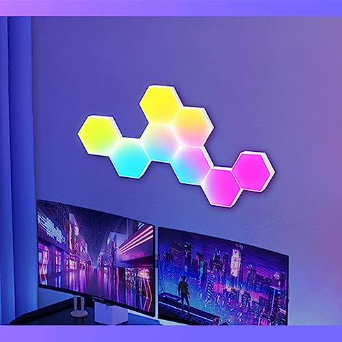 Kavolet Lampada da parete da gioco esagonale a LED, pannello RGB esagonale da 8 pezzi, luce a nido d'ape da gioco con controllo vocale WiFi BT Graffiti fai-da-te, lampada da parete con atmosfera