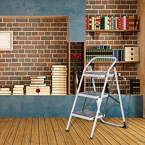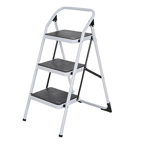 Kavolet Scaletta 3 gradini, Scaletta pieghevole, Antiscivolo pieghevole 3 Scala a pioli con grip telaio, Passo portatile Sgabello, 330lb / 150kg Capacità EN131 approvato