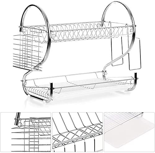 Kavolet Scolapiatti a 2 Livelli, Scolapiatti multifunzionale, Scolapiatti, Portabicchieri Porta Scodella Bacchette Porta Tagliere, Cremagliera Portautensili