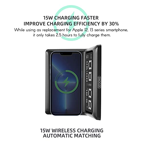 Kavolet 15W Sveglia digitale, Orologio digitale multifunzionale a specchio, Sveglia con ricarica wireless con ampio display dimmerabile,Funzione snooze,Uscita USB,per camera da letto Soggiorno Ufficio