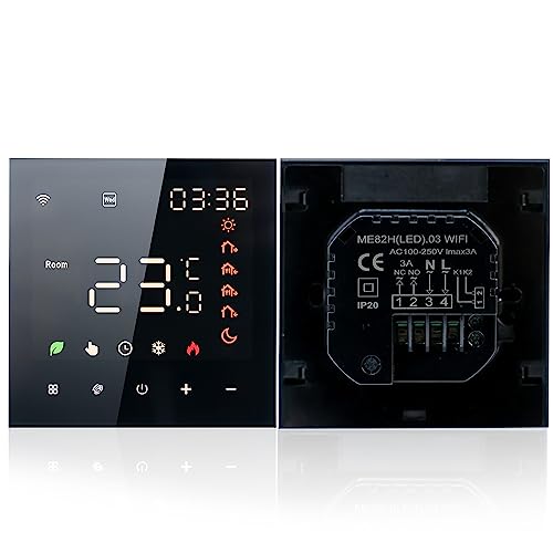 Funzione di programmazione: questo termostato WiFi ha una funzione di programmazione 5+2/6+1, che consente di impostare fino a 6 diverse impostazioni di temperatura per ogni giorno della settimana e un'impostazione aggiuntiva per il fine settimana. In questo modo avrete il controllo completo delle impostazioni di temperatura e garantire il massimo comfort ed efficienza energetica.
