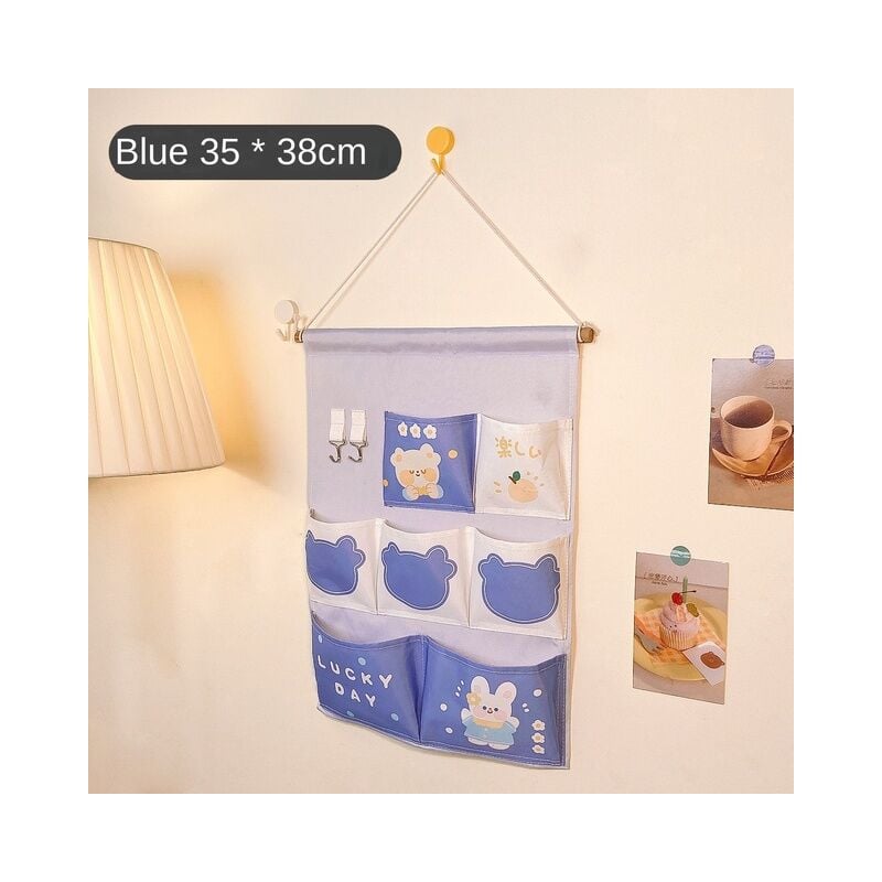 Kawaii Pattern Wall Mounted Wardrobe Organizer Sundries Storage Bag Jewelry Hanging Wall Pouch Hang Cosmetics Toys Organizer,blue seven grids