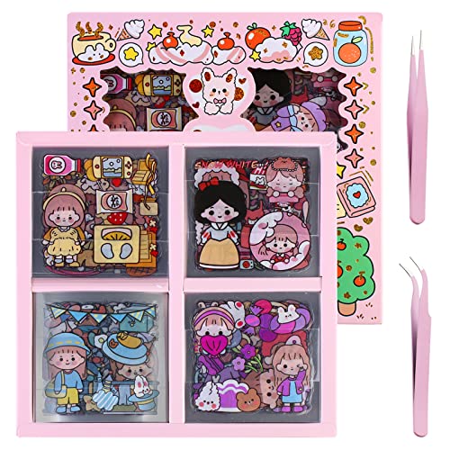 100 adesivi Kawaii: riceverete 100 adesivi trasparenti Kawaii in PET e 2 pinzette rosa, una scatola con 100 adesivi per ragazze kawaii contiene adesivi in 5 colori e motivi a tema e 20 adesivi decorativi Kawaii per ogni tema.