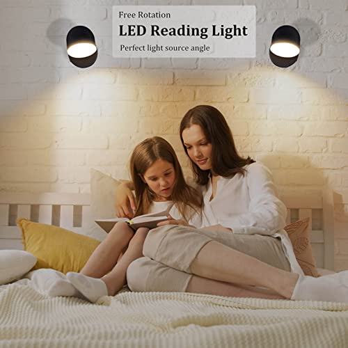 KAWELL Interno LED Applique da Parete Sensibile Al Tocco LED Lampada da Lettura da Parete Oscuramento Continuo 350° Rotazione Libera per Camera da Letto Comodino Soggiorno Scale, Nero 3000K