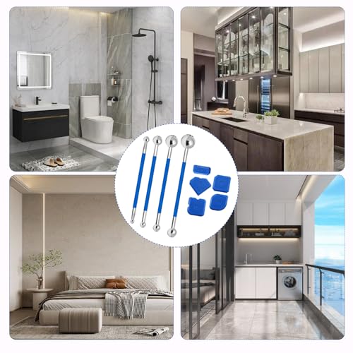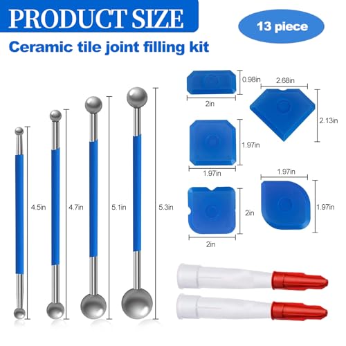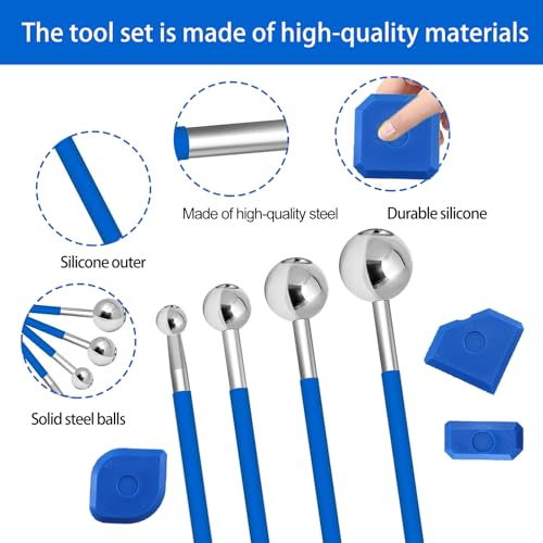 PACCHETTO INCLUSO: È possibile ricevere il kit di riempimento delle fughe per piastrelle Set di strumenti a sfera in metallo da 4 pezzi, set di strumenti per calafataggio in silicone da 5 pezzi, punte in silicone da 2 pezzi e tappi da 2 pezzi, per un totale di 13 pezzi. Le diverse dimensioni degli strumenti possono soddisfare le vostre esigenze per le diverse applicazioni, anche se è difficile riparare e pulire le fughe delle piastrelle.