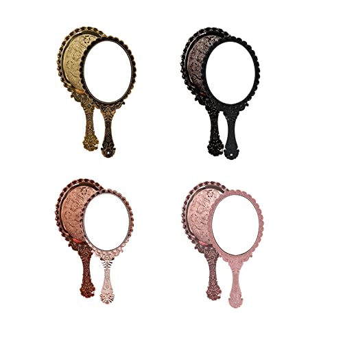 KAYLRE 4 PCS Specchio per Trucco,Mini Specchio Portatile, Specchio Ovale Vintage, Specchio per Trucco con Maniglia Retrò, Specchio Minuscolo per Strumento di Bellezza per Trucco