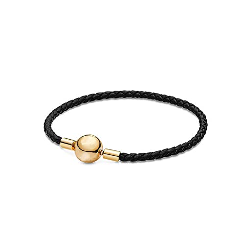 Kaytong S925 Argento Sterling Nuovo Classico Braccialetto in Pelle con Anello Rosso a Testa Tonda Bracciale Adatto Gioielli semplici Fai da Te per Le Donne-Nero, 16 cm