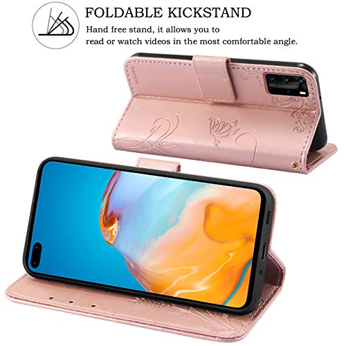 Kazineer Cover per Huawei P40 PRO, Custodia in Pelle Premium Portafoglio Flip Cover per Huawei P40 PRO (Oro Rosa)