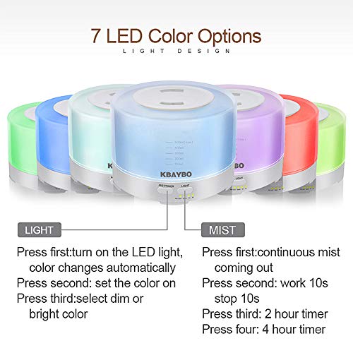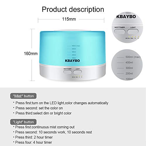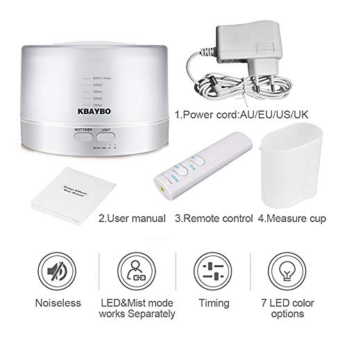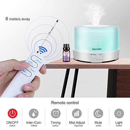 KBAYBO 500ml Telecomando Oli Essenziali Diffusore e Oli Confezione Regalo, Luce Notturna, umidificatore, impostazione dell'ora