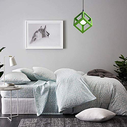 KBEST Lampadario a sospensione, moderno, a forma di cubo, stile geometrico, in metallo, E27, plafoniera per camera da letto, soggiorno, ristorante, 16 cm verde