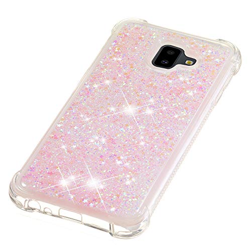 KBIKO-zxl Compatibili con Custodia per Samsung Galaxy J6 Plus, Glitter Custodia TPU Silicone Protettivo Morbido Brillantini Quicksand Cover per Samsung Galaxy J6 Plus.Silver Pink YBL