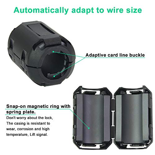 ✔【Ben fatto e di alta qualità】- Realizzato in involucro in plastica e nucleo in ferrite, con interno auto-adattamento clip può montare su cavi saldamente e lavorare per un super lungo tempo