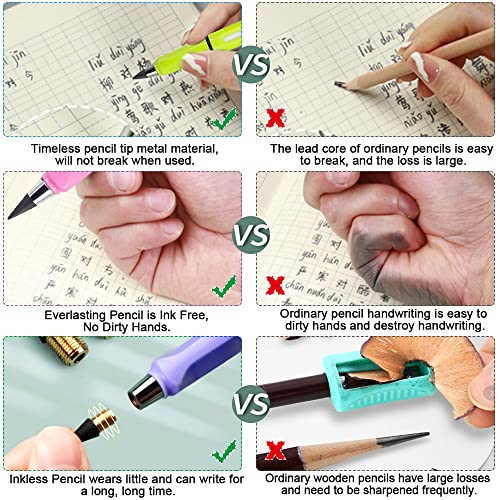 ✏Matita eterna: le matite permanenti senza inchiostro sono realizzate in plastica e rame di alta qualità. La punta della penna sfrega sulla carta, che fa decomporre le molecole di metallo per creare un carattere che ha lo stesso colore della matita e può essere cancellato.