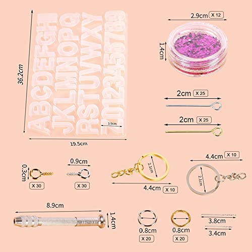【Kit di stampi in resina siliconica 186 pezzi】 Il set include 1 stampo per lettere, 20 pezzi di portachiavi a quattro maglie (oro e argento), 40 pezzi di anelli di ferro da 8 mm (oro e argento), 50 pezzi di 20 mm 9 spille per caratteri ( oro e argento) ), 60 mini viti 10 mm (oro e argento), 1 trapano a mano, 2 punte da trapano (1.0 e 1.2), 12 scatole di lustrini (12 colori). Accessori completi per soddisfare pienamente le tue esigenze di artigianato.