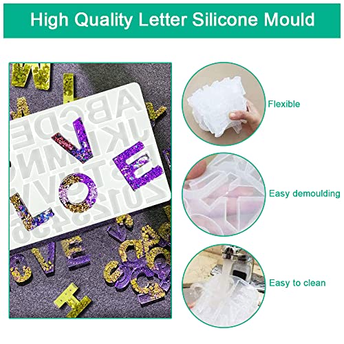 【Goditi il tuo fai-da-te al massimo】 Il kit di stampi in silicone in resina epossidica inclusi gli accessori possono rendere il tuo fai-da-te più vivido e colorato. Puoi organizzare liberamente lettere e numeri per creare oggetti unici. divertiti con gli stampi in resina dell'alfabeto.