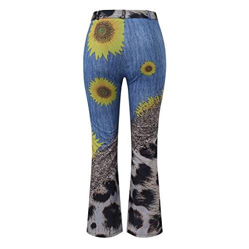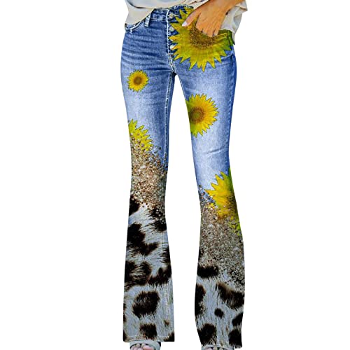KBOPLEMQ Jeans a zampa, da donna, eleganti, elasticizzati, skinny, con stampa a fiori, a gamba larga, casual, con tasche, giallo., M