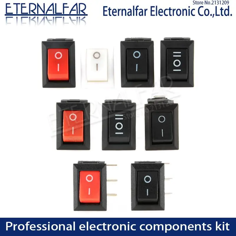 KCD11-101 Push Button Switch 10x15mm SPST 2Pin 3Pin 3A 250V 6A KCD11 Snap-in On/Off Boat Rocker Switch 10MM*15MM Black Red White