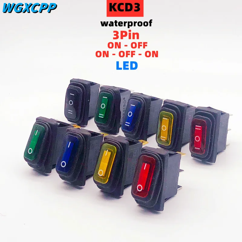 KCD3 Waterproof Rocker Switch ON-OFF/ON-OFF-ON 3Pin,2/3 Position,Electrical Equipment With Lighting Power,15A 250VAC/20A 125VAC