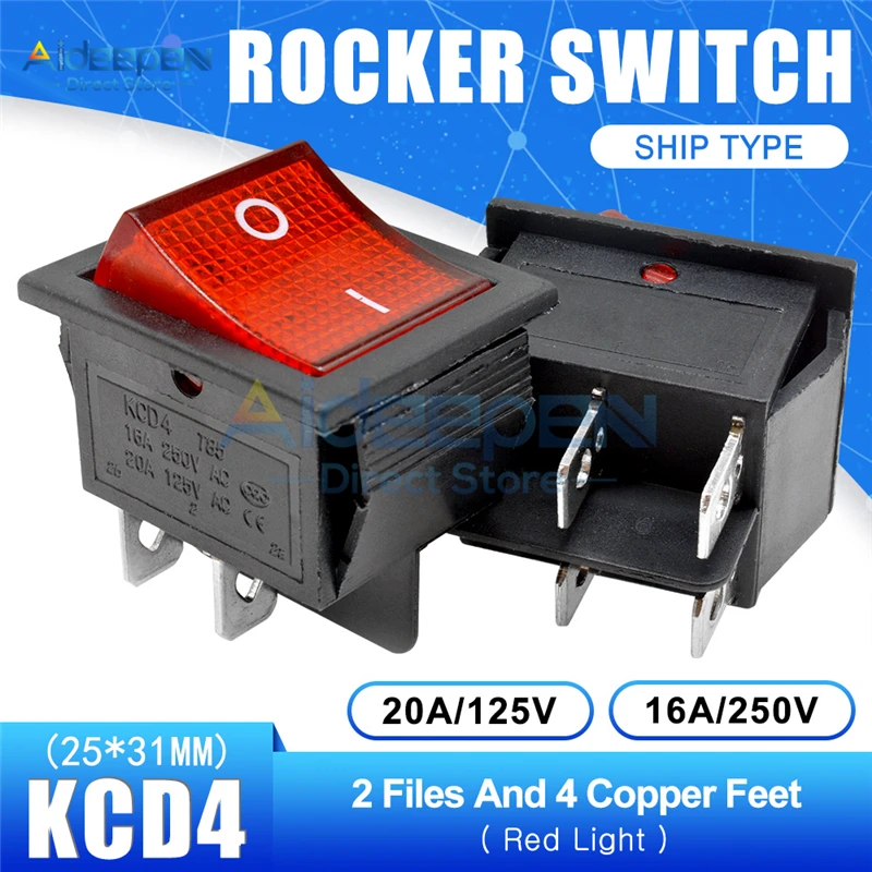 KCD4 Rocker Switch AC 16A/250V 20A/125V ON-OFF 2/3Position 4/6 Pins With Light Power Switch With Dust Waterproof Cap 25x31mm