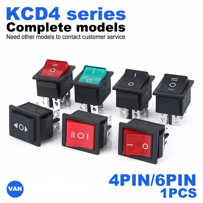 KCD4 Rocker Switch ON-OFF 2/3Position 4 Pins / 6 Pins Electrical equipment With Light Power Switch 16A 250VAC
