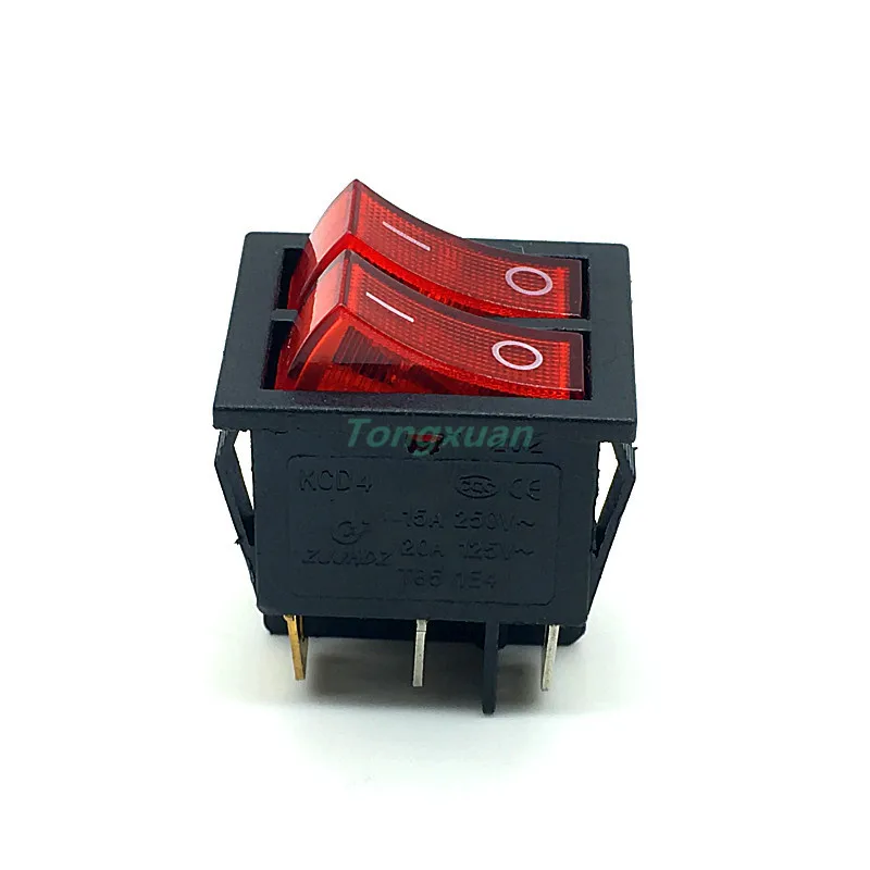 1pc KCD4 Rocker Switch with Red LED switch Duplex Button Switch double Switch 15A 250V 20A 125V