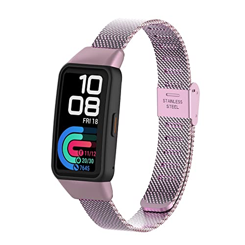 Kcdream Cinturino Compatibile per Huawei Band 6, Strap per Honor 6 Band Cinturino in Acciaio Inossidabile Metallo Wristband Cinturino per Huawei Band 6/Honor Band 6 (No Host) - Rosepink