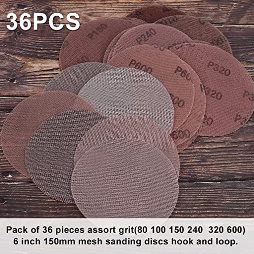Kcmell 36 dischi abrasivi a rete da 150 mm, 150 mm, grana di assort 80/100/150/240/320/600, disco senza polvere anti-blocco carta vetrata affilata a lunga durata per mobili in legno auto