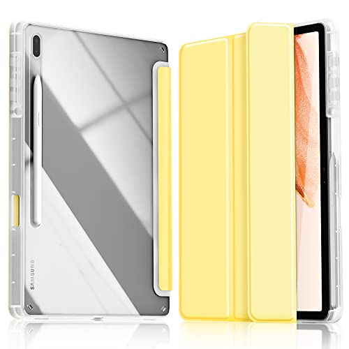 Kdely Custodia per Samsung Galaxy Tab S8+ /S7 FE /S7+ 12.4 Pollici con Portapenne S Pen Holder, Custodia Protettiva Ultra Sottile Case Tablet con Funzione Sveglia/Sospensione Auto - Giallo