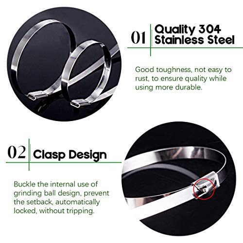 3. Design speciale e facile da usare: queste fascette di bloccaggio sono progettate con fibbia ispessita per rafforzare la cravatta. Inoltre, la fibbia contiene sfere in acciaio inox per evitare che le fascette si allentino dopo essere state bloccate. Ultimo ma non meno importante, non hai bisogno di strumenti per installarle, facilmente come una cerniera.