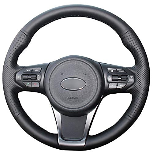 KEAGGJF Coprivolante, per Kia Sorento 2015-2018 / Sedona 2015-2019, coprivolante in pelle nera cucita a mano, filo blu